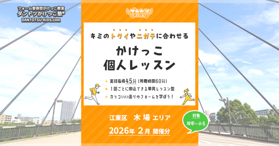 *本イベントに関して施設管理者への問い合わせはご遠慮ください。ご質問等はダントツかけっこ塾までお願いします。